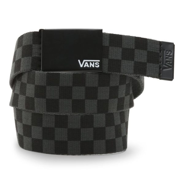 The Deppster Web Belt is a 100% polyester web belt with a printed checkerboard pattern and classic Vans logo snap buckle.