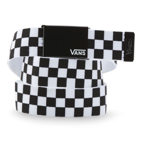 The Deppster Web Belt is a 100% polyester web belt with a printed checkerboard pattern and classic Vans logo snap buckle.
