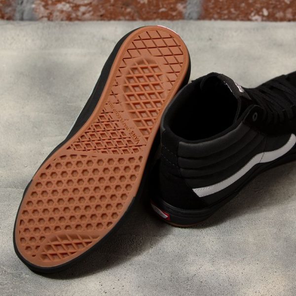 The Sk8-Hi Pro BMX, a Vans classic upgraded for enhanced performance, features sturdy suede and canvas uppers, enhanced footbeds for superior cushioning and impact protection, and Vans original waffle outsoles made of a rubber that offers grip and support. It also includes DURACAP reinforcement rubber underlays in high wear areas for unrivaled durability, and the Vans revolutionary Wafflecup BMX construction for unrivaled support and pedalfeel.