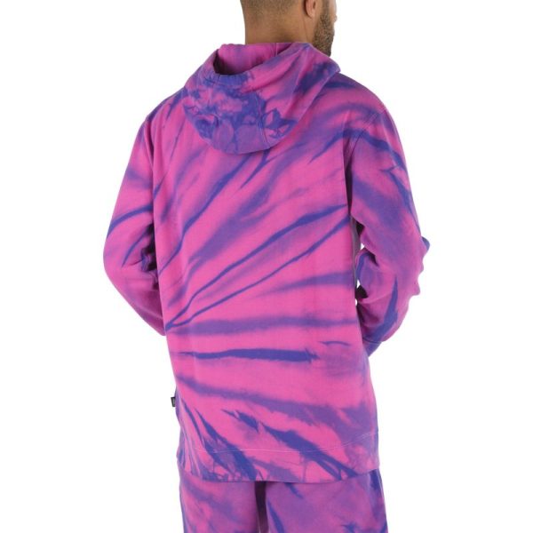 The Park Tie Dye Pullover Hoodie is an 80% cotton, 20% polyester fleece pullover hooded sweatshirt with a front pouch pocket and chest graphics. Model is 6 feet tall and wearing a size Medium.