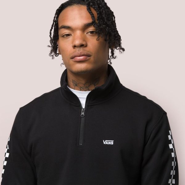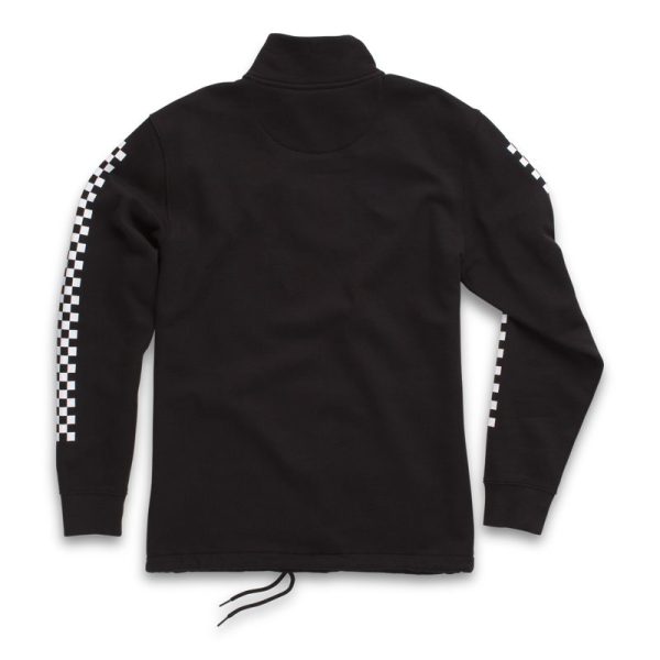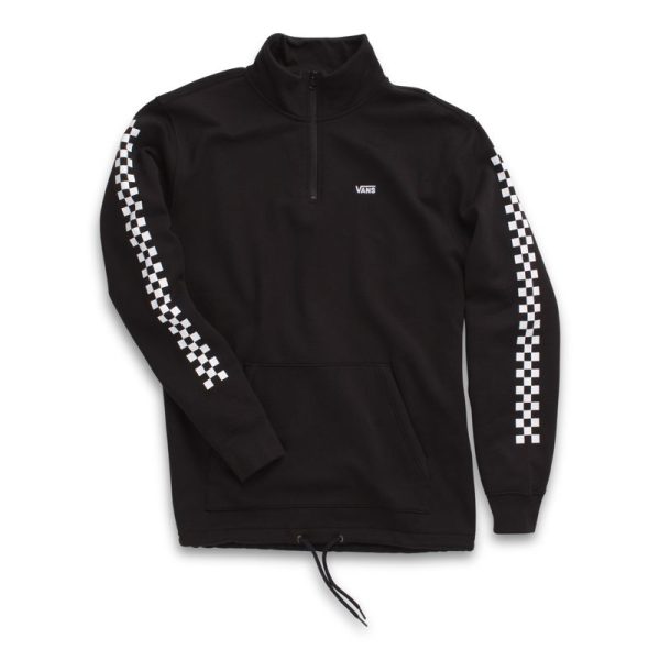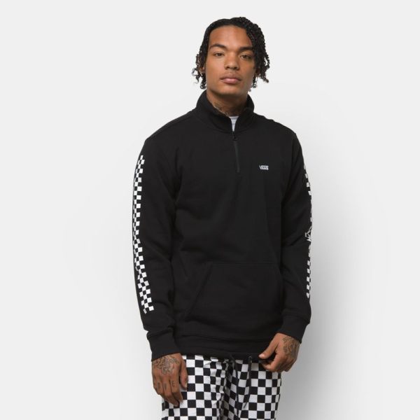 The expertly designed mock neck Versa Quarter Zip is made to perform without sacrificing style. Pro-built and constructed to withstand weather and skateboarding wear and tear, the Versa Quarter Zip is equipped with a super-durable, water-repellent STORM COTTON fabric construction and a patent-pending hidden media pocket that brings additional utility to this classic, style-driven silhouette. Made with 88% cotton and 12% polyester, the Versa Quarter Zip also features premium fleece, a quarter-zip mock neck, contrast printed lining at the interior neck, a checkerboard screen print at the sleeves, and direct embroidery at the chest. Model is 6 feet tall and wearing a size Medium.