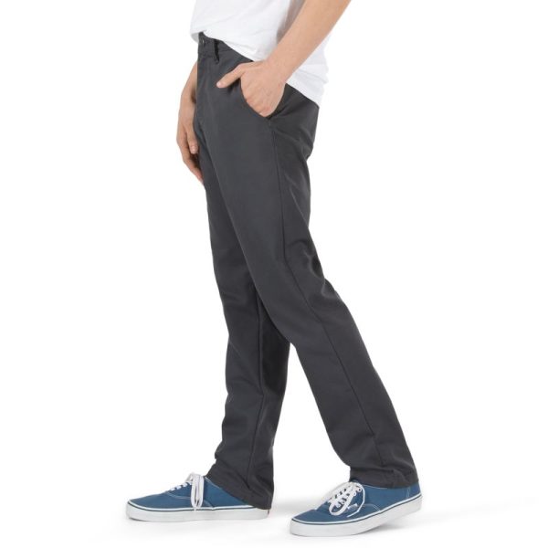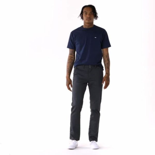 The Authentic Chino Stretch Pant is a 68% cotton, 30% polyester, and 2% Lycra® 7.8 oz. Sturdy Stretch twill chino pant featuring a timeless combination of classic styling and skateboard functionality. Utilizing a poly-covered elastane thread that provides long-lasting stretch and shape retention, the Authentic Chino Stretch Pant also includes front slash pockets, back welt pockets with button closures, a woven branded label, and an easy-wearing slim fit with a slight taper. Model is 6 feet tall and wearing a size 32.