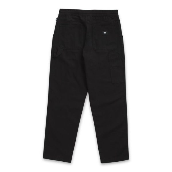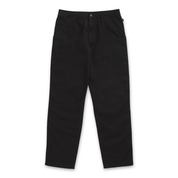 The Municiple Pant is a 100% BCI Cotton 8 oz. rigid nailhead canvas carpenter pant with an elastic waist and a loose, roomy fit. Model is 6 feet tall and wearing a size Medium.