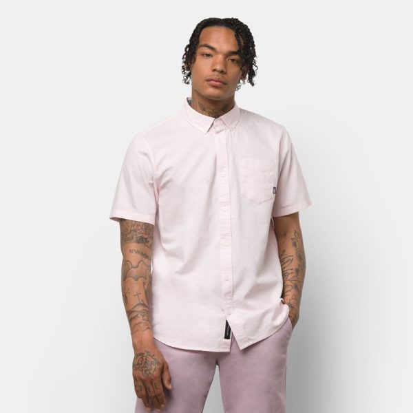 The Houser Buttondown Shirt is a 100% cotton oxford buttondown shirt with short sleeves and a chest pocket. Fit type: classic. Model is 6 feet tall and wearing a size Medium.