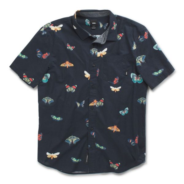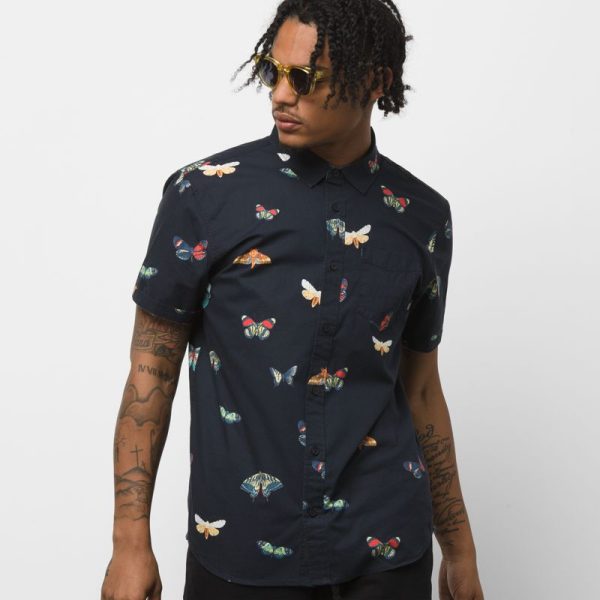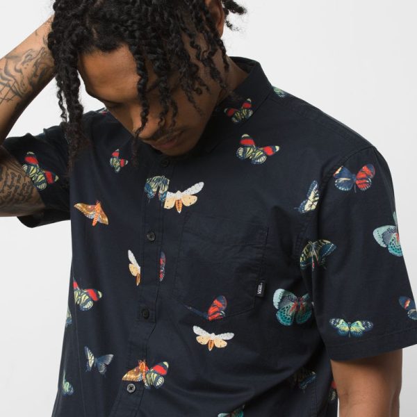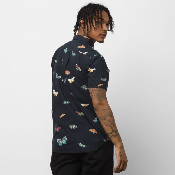 The Metamorphosis Short Sleeve Shirt is a 100% BCI Cotton poplin buttondown shirt with an allover print and a chest pocket. Model is 6 feet tall and wearing a size Medium.