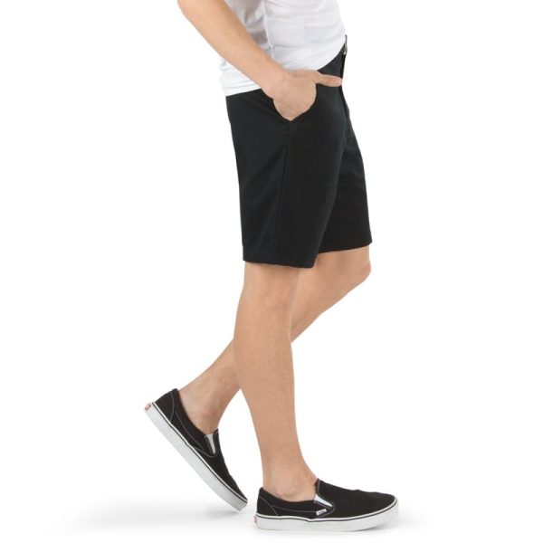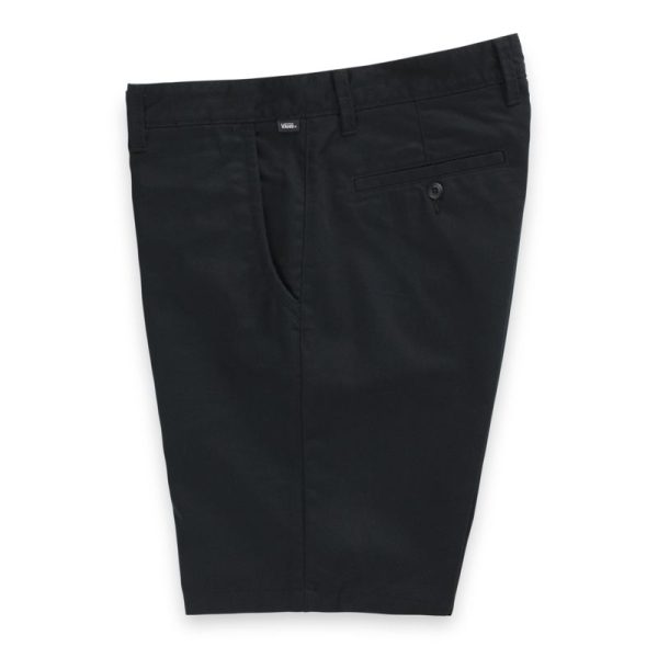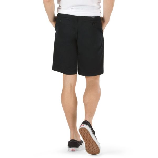 The Authentic Stretch Short is a 68% cotton, 30% polyester, and 2% elastane 7.7 oz. Sturdy Stretch twill chino short that utilizes a unique blend of engineered fibers to provide comfort and increased durability with exceptional shape and stretch retention. The Authentic 20″ Stretch Short also features front slash pockets, back welt pockets with a button closure, a woven Vans label, and a medium rise, modern fit. Model is 6 feet tall and wearing a size 32. Made from imported materials.