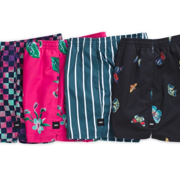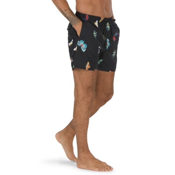 The Mixed Volley is a 100% polyester volley decksider short made from recycled fibers. It features an elastic waist, an allover butterfly print, side entry hand pockets, and a rear patch pocket. Model is 6 feet tall and wearing a size Medium.