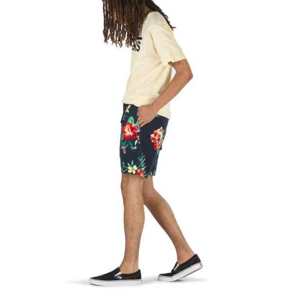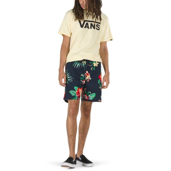 The Range Short 18 is a 100% BCI Cotton lightweight twill chino short with a floral print, an elastic waistband and a medium rise, modern fit that sits just below the waist. Model is 6 feet tall and wearing a size Medium.