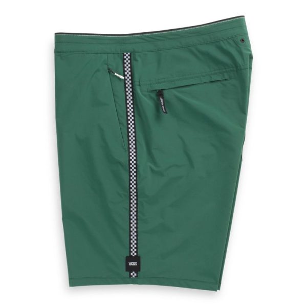 The Voyage Trunk is a 100% polyester 2-way stretch Ever-Ride boardshort utilizing renewable Sorona® fibers to combine functional benefits with an old school boardshort look. This fabric is lightweight, durable, dries quickly, has a mechanical and long-lasting stretch, and features a compact weave structure and brushed tricot inner waistband that creates a smooth finish against the skin for comfort in or out of the water. The Voyage Trunk also includes invisible zip pockets with secure closures, air drain holes for ventilation, stow pockets for stash-and-go portability, and an 18.5″ outseam and wider leg for mobility. Model is 6 feet tall and wearing a size 32.