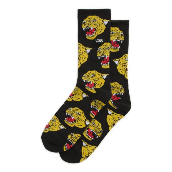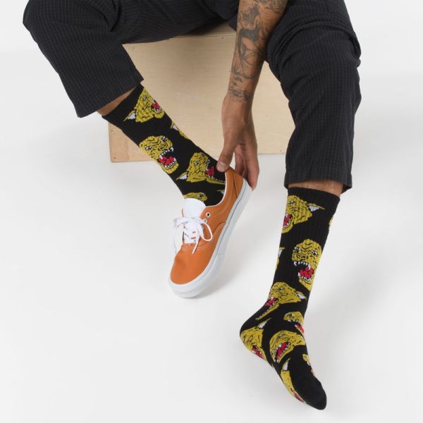 The Growler Crew Sock is a 55% cotton, 39% nylon, 5% elastodiene, and 1% elastane crew sock with jacquard art and an embroidered Vans logo.