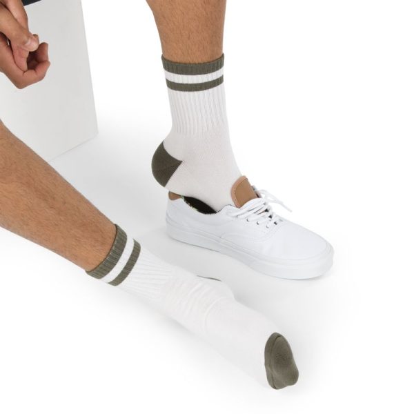 The Vans Half Crew Sock is an 81% cotton, 15% nylon, 3% elastodiene, and 1% elastane half crew sock with jacquard art and an embroidered Vans logo.