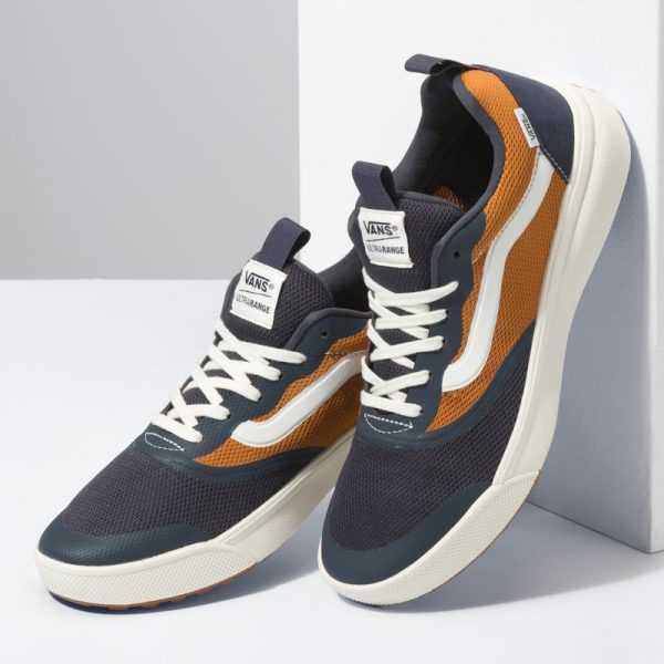 A new addition to the Vans family, the UltraRange Rapidweld was the solution to our top athletes’ need for a versatile shoe that provided comfort for long journeys around the world. Featuring an upgraded UltraCush midsole compound offering the ultimate in comfort and cushioning, plus a LuxLiner sock-fit bootie construction with seamless internals to reduce weight, rubbing, and hotspots, the UltraRange Rapidweld provides a clean aesthetic that will get you there. It also includes breathable textile and synthetic suede uppers, Rapidweld details, water-based inks and glues, and durable co-molded rubber mini lug outsoles to reduce glue and improve finishing.