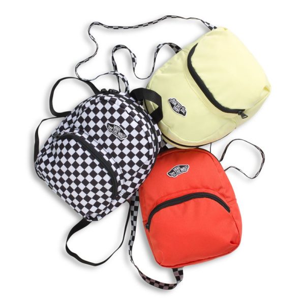 The Got This Mini Backpack is a 100% polyester mini backpack with adjustable checkerboard straps, exterior zip pockets, and a logo patch. It measures 10 H x 7 W x 4 D inches.