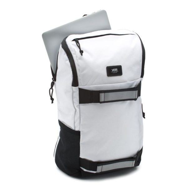 The Obstacle Skatepack is a 100% nylon skate backpack made with CORDURA® fabrics that are recognized for their long-lasting durability and resistance to abrasion, tearing, and scuffs. Featuring one large main compartment with anti-odor treatment, ergonomically-designed padded shoulder straps, a waffle mesh back panel, and stretch mesh water bottle pockets, it also includes a padded laptop compartment (fits most 15 laptops), an external zip pocket, adjustable hideaway skate straps to carry your board or jacket, and an adjustable sternum strap. Measuring 18 L x 11 W x 6 D inches, it has a 23-liter capacity.
