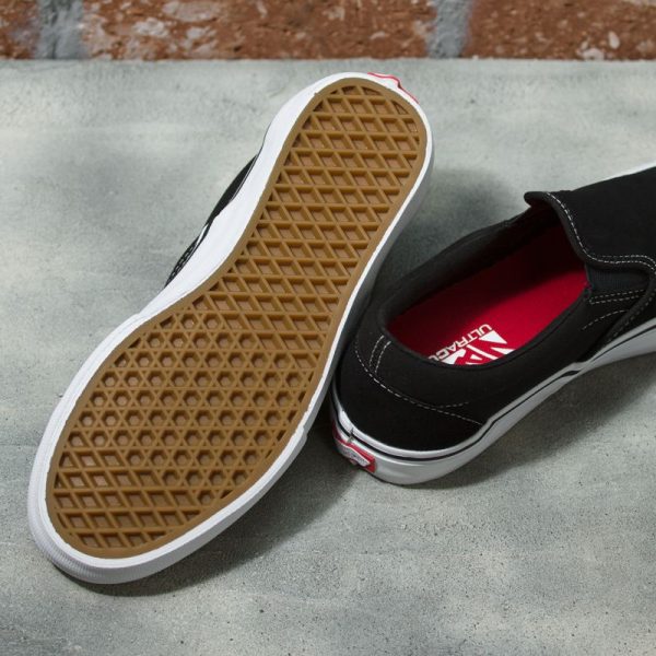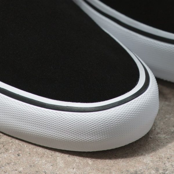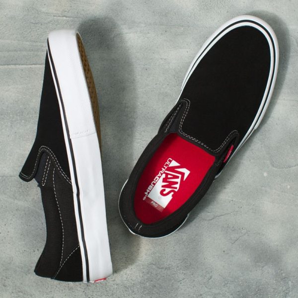 The Slip-On Pro, a Vans classic upgraded for enhanced performance, features suede and canvas uppers, single-wrap foxing tape, UltraCush HD sockliners to keep the foot close to the board while providing the highest level of impact cushioning, and Vans original waffle outsoles for superior grip and control. The Slip-On Pro also includes Duracap reinforcement rubber underlays in high wear areas for unrivaled durability.TAGSlow top shoes, slip on shoes