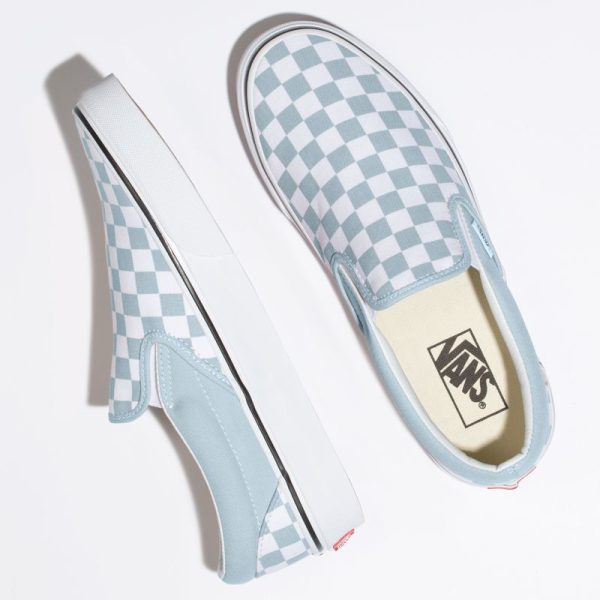 The Checkerboard Classic Slip-On features sturdy low profile slip-on canvas uppers made with the iconic Vans checkerboard print, padded collars, elastic side accents, and signature rubber waffle outsoles.