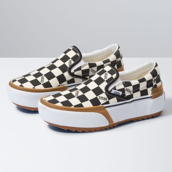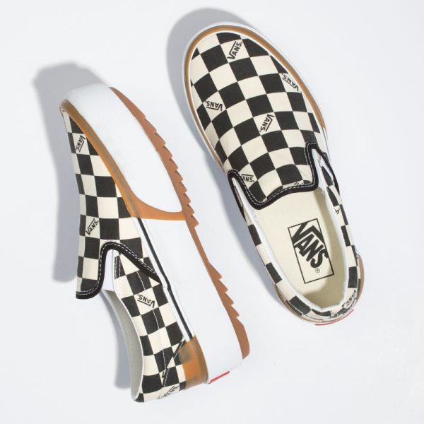 The Checkerboard Classic Slip-On Stacked takes the iconic Vans silhouette to an elevated level. Made with sturdy canvas uppers featuring an allover checkerboard print, the Checkerboard Classic Slip-On Stacked also includes oversized features and layers like platform bumpers, exaggerated outsoles, and translucent foxing tape.