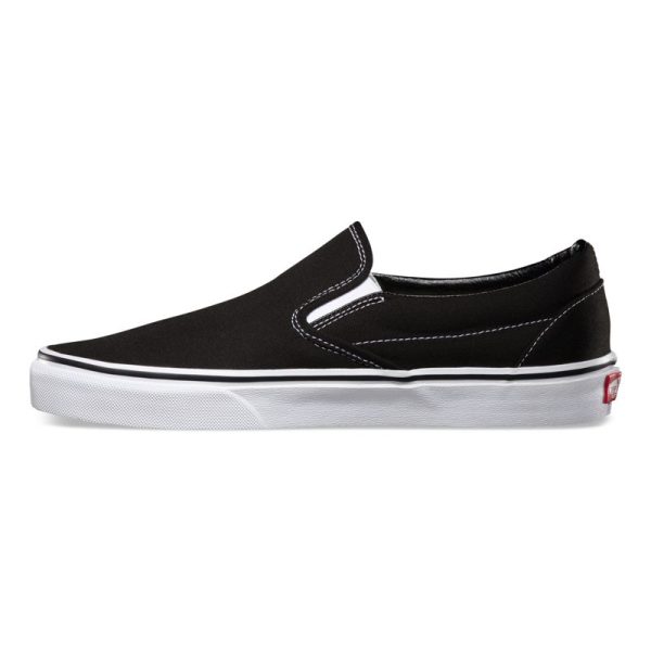 The Canvas Classic Slip-on has a low profile, slip-on canvas upper with elastic side accents, Vans flag label and Vans original Waffle Outsole.
