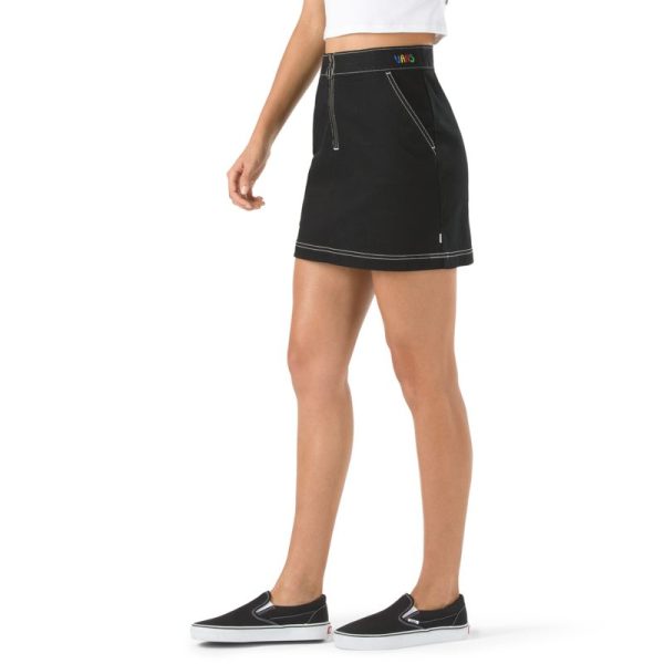Teen skateboarding phenom Brighton Zeuner continues to smash barriers in the male-dominated world of professional skateboarding. This pint-sized powerhouse is already a two-time park terrain skateboarding womens world champion, but its her style on and off the board that really sets her apart, as celebrated by this collection. Designed by Brighton and Vans for you to smash your own barriers, the Brighton Skirt is a 98% cotton, 2% elastane twill high-waisted A-line mini skirt with multi-placement embroidery and graphics, contrast stitching, slash pockets, and a circle zipper pull. Model is 5 feet 9 inches tall, has a 23-inch waist, and is wearing a size Small.