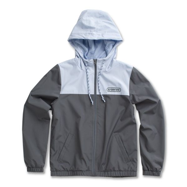 The Kastle Block Windbreaker is a 100% polyester hooded windbreaker jacket with a full zip, mesh lining, and colorblock details. It also includes two-tone novelty drawcords, slit pockets, and a logo screen print at the chest. Model is 5 feet 9 inches tall and wearing a size Small.