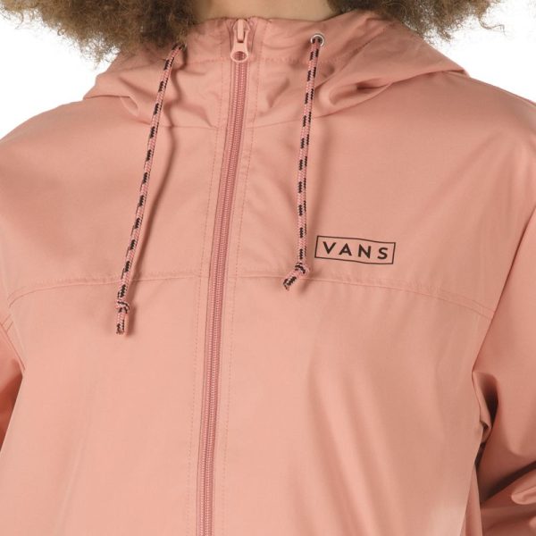 The Kastle Easy Box Windbreaker is a 100% polyester hooded windbreaker jacket with a full zip, mesh lining, and two-tone novelty drawcords. It also includes slit pockets and a box logo screen print at the chest. Model is 5 feet 9 inches tall and wearing a size Small.