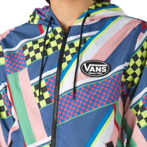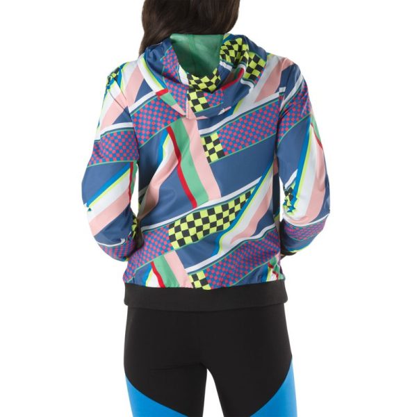The Ramp Tested Jacket is a 100% polyester hooded windbreaker jacket featuring a full zip, an allover print, and contrast color mesh lining. It also includes ribbed knit trim, slash pockets, and a rubberized logo patch at the left chest. Model is 5 feet 9 inches tall and wearing a size Small.