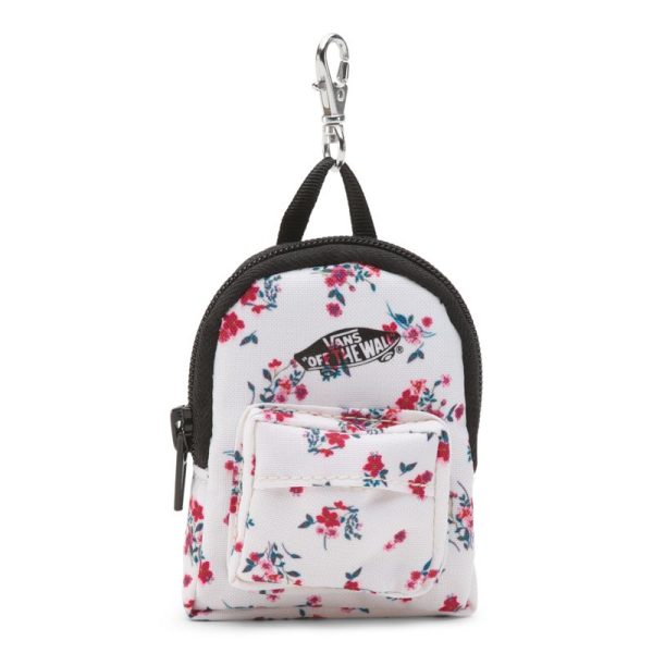 The Vans Backpack Keychain is a 100% polyester miniature Vans backpack keychain featuring an allover floral print, a zip pocket, and an Off The Wall logo. The metal hook is made from 100% zinc alloy, and the jump ring is 100% iron.