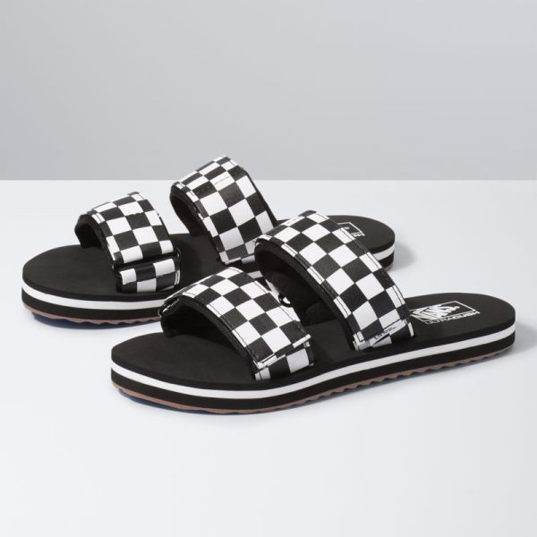 The all new Checkerboard Cayucas Slide features synthetic leather straps with the iconic checkerboard print and hook-and-loop adjustability, UltraCush Lite footbeds, durable rubber outsoles with the new sawtooth tread, and water-based inks and glues.