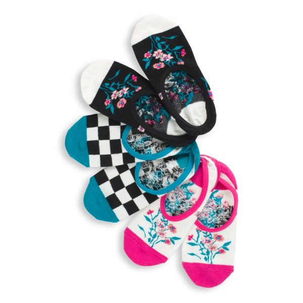 The Beauty Floral Canoodle Socks 3 Pack features three pairs of novelty canoodle socks with floral jacquard art. They are made with 58% cotton, 40% nylon, and 2% elastane.