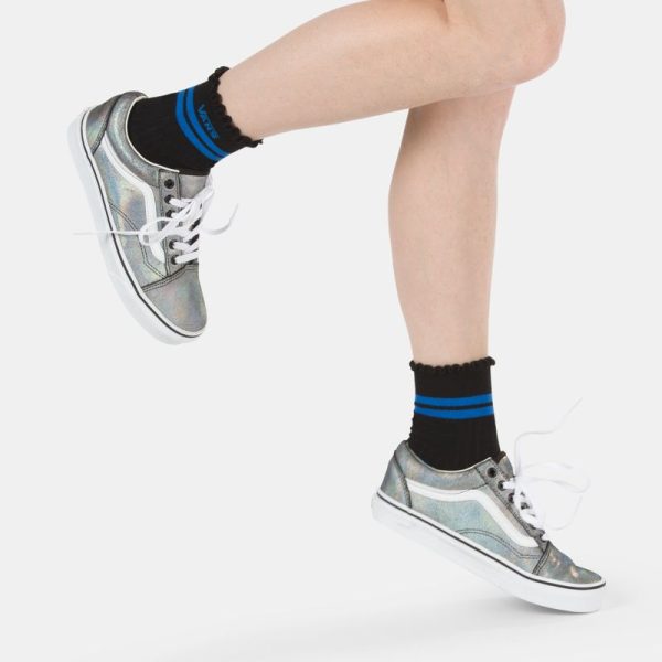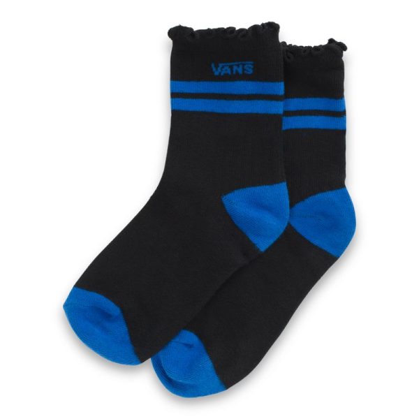 The Ruffed Up Sock is a 62% cotton, 31% polyester, 4% elastane, and 3% nylon ribbed crew sock with ruffle details at the top.
