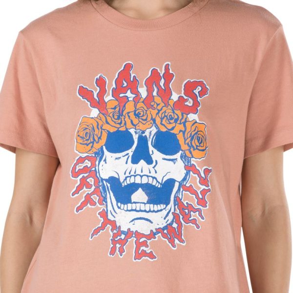 The Brancho Boyfriend T-Shirt is a heavy 100% cotton jersey boyfriend tee with floral skull graphics at the front. Model is 5 feet 9 inches tall and wearing a size Small.