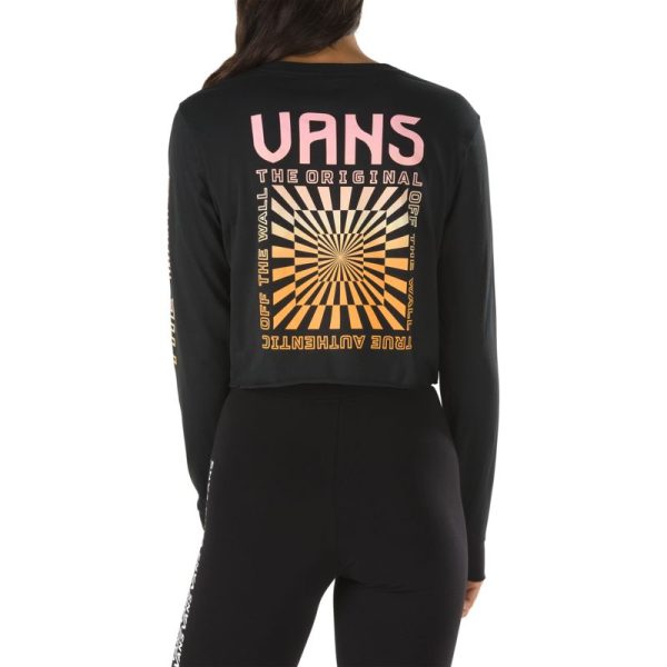 The Breath Work T-Shirt is a heavy 100% cotton jersey long sleeve tee with graphics at the chest, back, and sleeve, and a cropped fit. Model is 5 feet 9 inches tall and wearing a size Small.