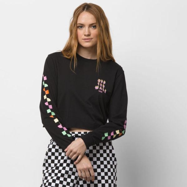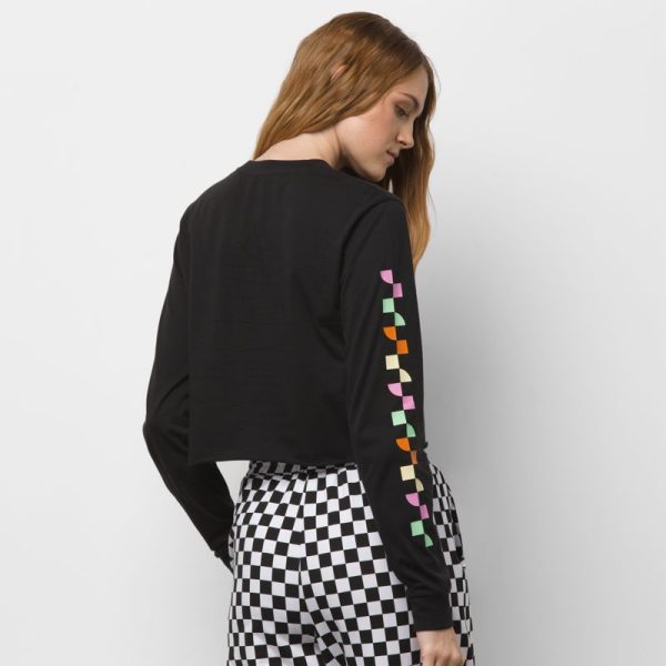 The Reign Marker T-Shirt is a 100% cotton long sleeve tee with graphics at the chest and sleeves and a cropped fit. Model is 5 feet 9 inches tall and wearing a size Small.